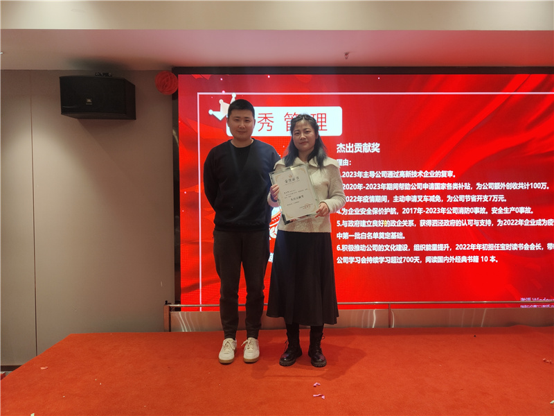 緊接著,大會(huì)進(jìn)行了一系列的表彰環(huán)節(jié),對公司2023年表現(xiàn)優(yōu)秀的員工進(jìn)行了隆重表彰。這既是對過去一年來為公司作出杰出貢獻(xiàn)的員工的褒獎(jiǎng),也是對激勵(lì)全體員工為更美好的明天努力奮斗的鞭策。