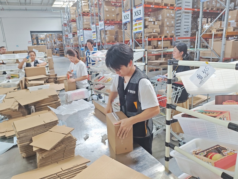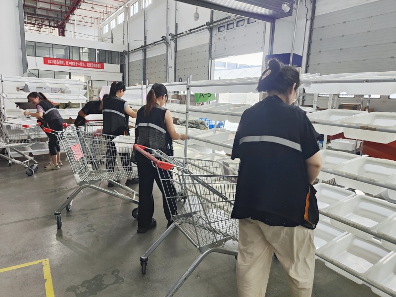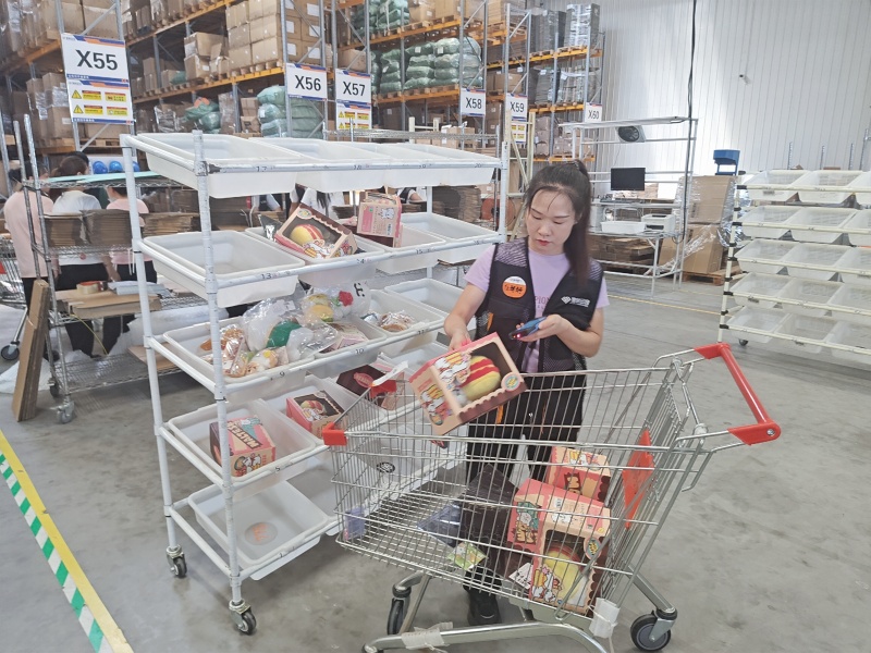 緊接著的分撥環(huán)節(jié),根據(jù)訂單要求,將商品有條不紊地進(jìn)行分揀操作。