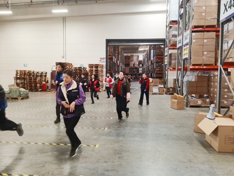 短短幾分鐘內(nèi),所有員工便成功從各倉庫的不同區(qū)域疏散至空曠的安全地帶,集合點名,全員到齊,充分展現(xiàn)出平日里扎實的應(yīng)急疏散訓(xùn)練成效。