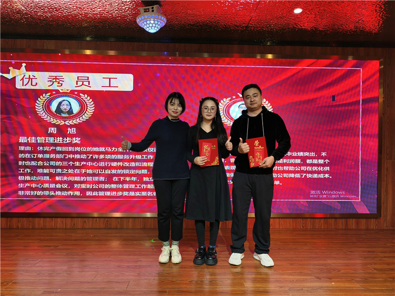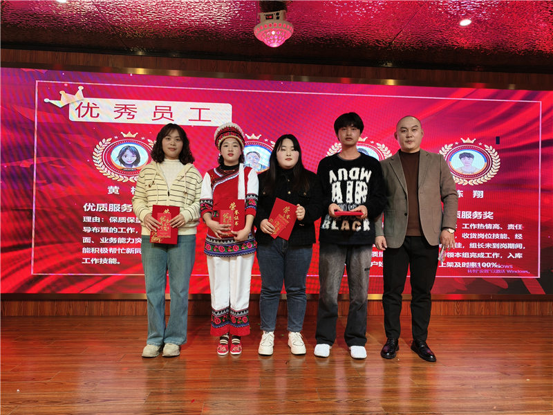 年會(huì)的最后一部分是優(yōu)秀員工頒獎(jiǎng)環(huán)節(jié)。公司對(duì)在過(guò)去一年中表現(xiàn)突出的員工進(jìn)行了表彰,頒發(fā)了多個(gè)獎(jiǎng)項(xiàng),包括優(yōu)秀員工獎(jiǎng)、優(yōu)秀班組獎(jiǎng)等等。獲獎(jiǎng)員工們上臺(tái)領(lǐng)獎(jiǎng),他們的臉上洋溢著自豪與喜悅。這一刻,他們不僅是個(gè)人榮譽(yù)的獲得者,更是寶時(shí)云倉(cāng)大家庭的驕傲和榜樣。