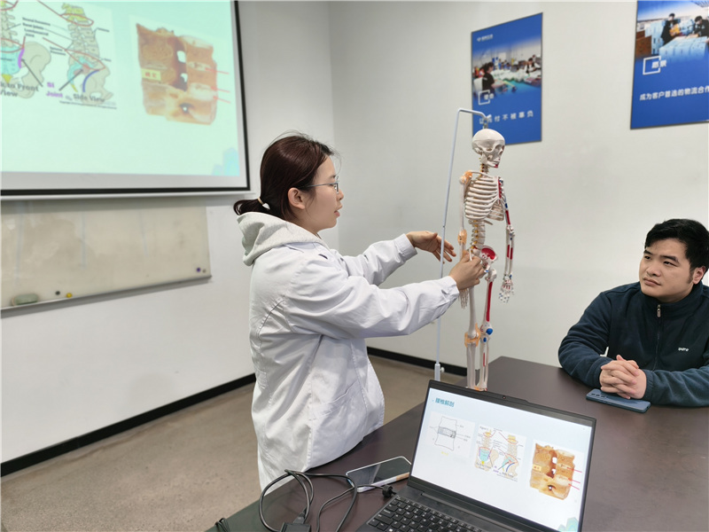 課程伊始,醫(yī)生詳細(xì)地為大家分享了腰椎間盤(pán)突出的基礎(chǔ)知識(shí),讓員工們了解其發(fā)病原因、癥狀表現(xiàn)等,從根源上認(rèn)識(shí)這一疾病。在預(yù)防與康復(fù)環(huán)節(jié),醫(yī)生給出了許多實(shí)用建議,無(wú)論是工作中的正確坐姿、合理的運(yùn)動(dòng)鍛煉方式,還是日常休息的注意事項(xiàng)等,都一一進(jìn)行了細(xì)致講解。