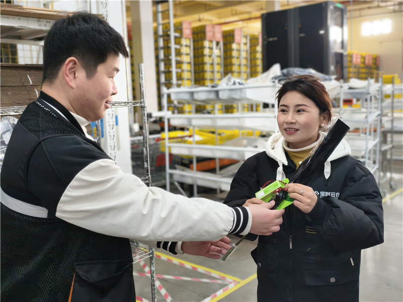節(jié)日上午,人事行政部陳文娣和王雷推著滿載鮮花的花車,化身“送花使者”,帶著精心準(zhǔn)備的鮮花與小禮品,走進(jìn)總部辦公室和3個倉庫,將飽含謝意的花束送到每一位女性員工手中。
