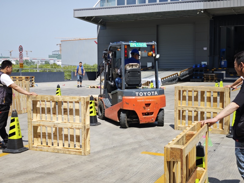 實操比拼則設(shè)置了載貨過障礙、精準(zhǔn)堆垛、寬貨過窄門三大項目,聚焦日常作業(yè)中的核心場景。