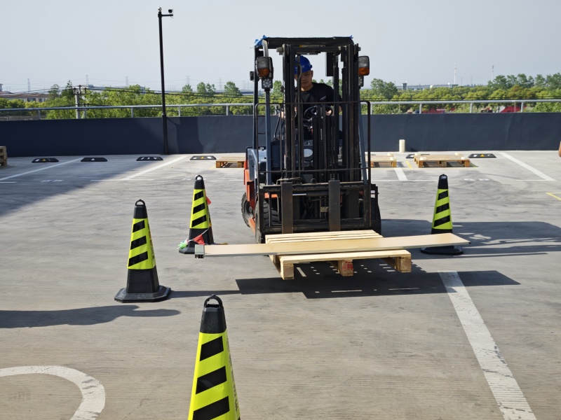 【寬貨過窄門】項目要求參賽者駕駛叉車,將寬度大于門口尺寸的貨物安全、準(zhǔn)確地通過一個狹窄的入口,這不僅需要對叉車有深入的理解和熟練的操作技巧,還需要良好的心理素質(zhì)來應(yīng)對比賽的壓力。
