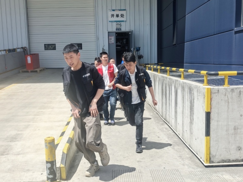 “起火了!全員注意疏散!”隨著警報聲響起,演練正式拉開序幕。新浜一倉與新浜二倉模擬了倉庫因電氣線路老化引發(fā)火災的緊急情況?,F(xiàn)場濃煙滾滾,警報長鳴,各應急小組迅速響應,分工明確,迅速組織人員撤離至安全區(qū)域,同時啟動初期火災撲救程序。