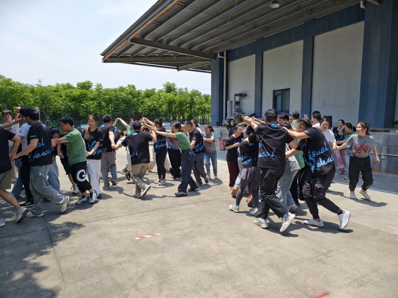 所有人分成4列,手拉手站成一排,挑戰(zhàn)隊員需要蛇形穿過隊員們高舉形成的手下通道,而且過程中手不能松開!這個活動不僅考驗著大家的身體協(xié)調(diào)性,更考驗著團隊的默契與配合。